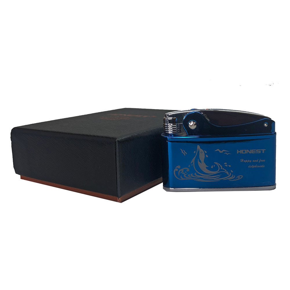 Автоматическая бензиновая зажигалка, механика, сталь HONEST дельфин (синий)