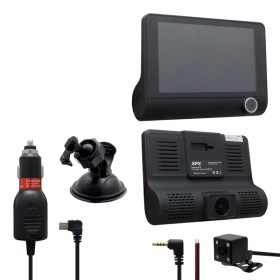 Автомобильный видеорегистратор XPX P9 имеет переднюю камеру, салонную камеру и выносную заднюю камеру с русским меню.