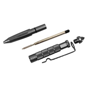 Вершина этой ручки имеет острый наконечник. Такая конструкция идеально подходит для отражения ударов нападающего на вас человека, нанесение болезненных колющий и проникающих ударов, а так же предназначена для разбития стекла при эвакуации или спасения.
