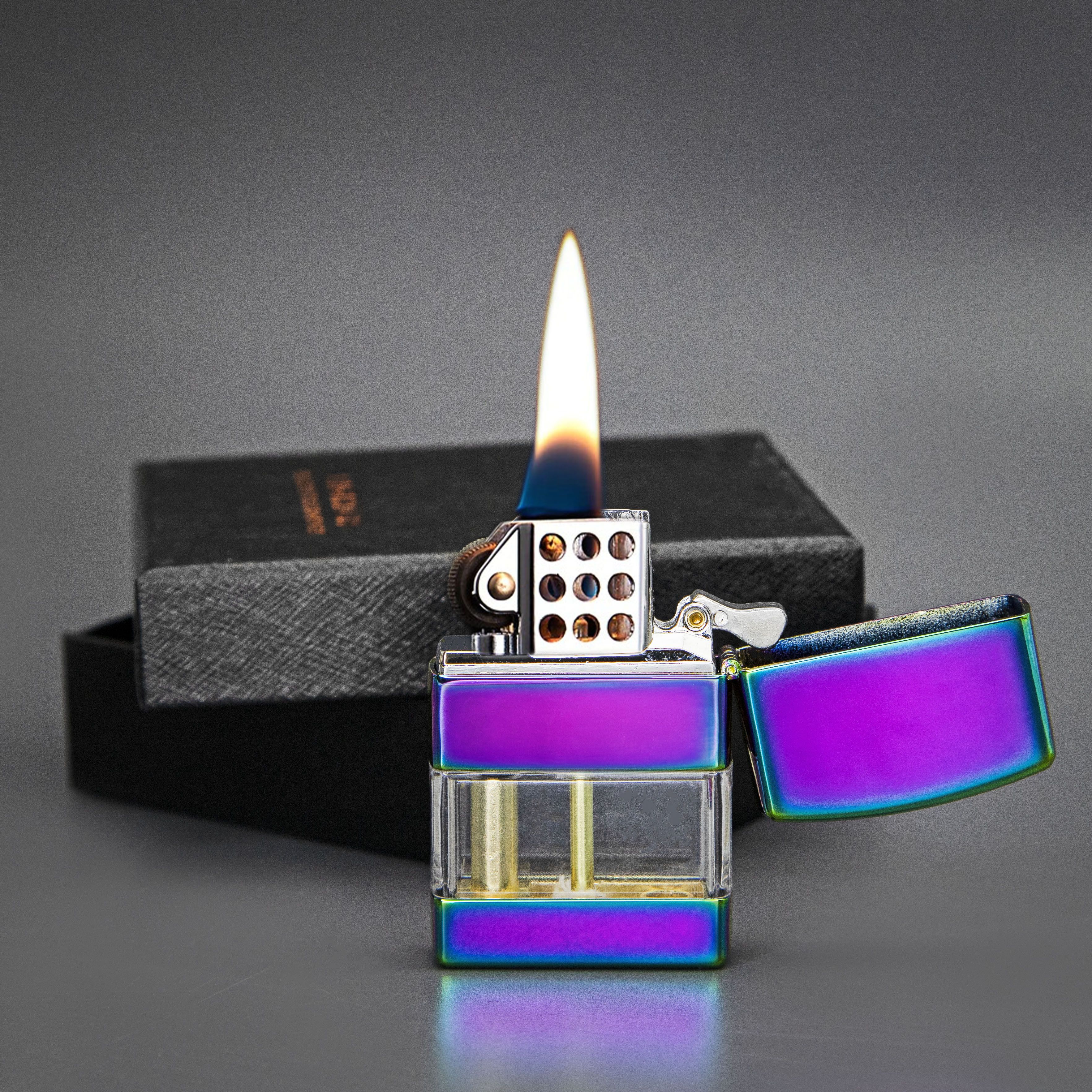 Бензиновая металлическая зажигалка с резервуаром для топлива (хамелеон).