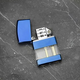 Бензиновая металлическая зажигалка с резервуаром для топлива (синяя)