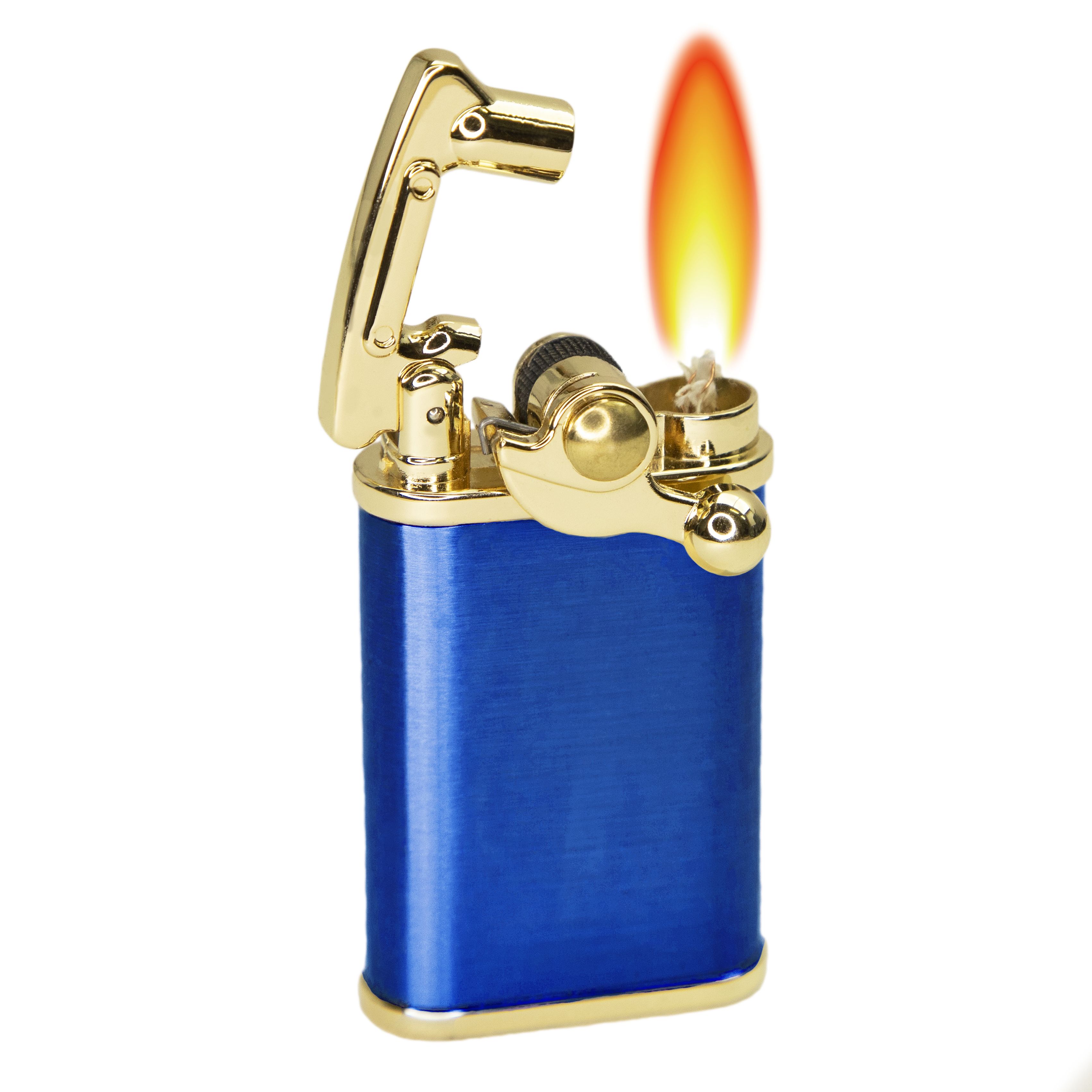 Бензиновая сверхдолгая автоматическая стальная ретро зажигалка (синий) / Фитиль, кремний в комплекте