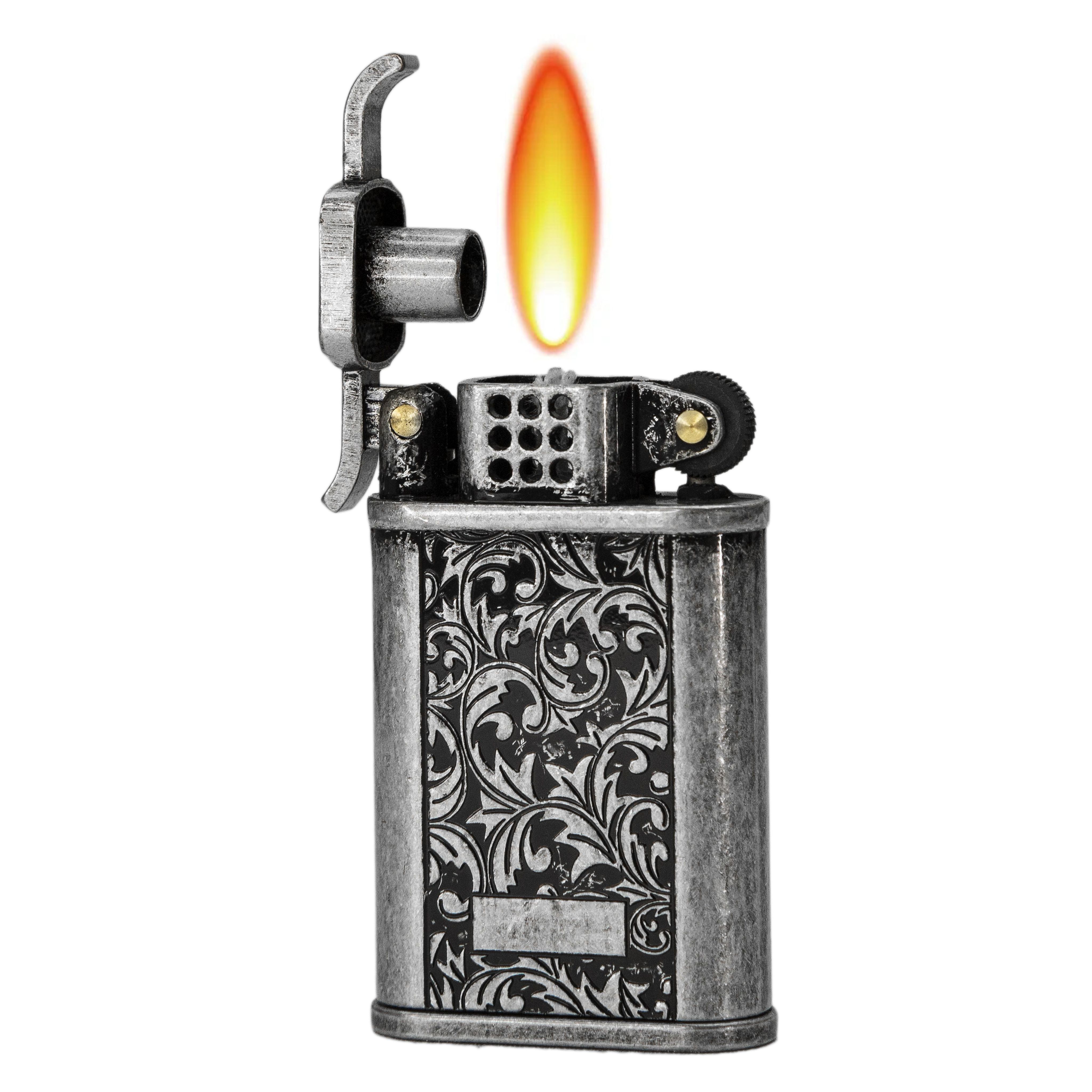 Сверхнадёжная бензиновая зажигалка, в очень прочном корпусе. Выполнена в красивом винтажном стиле, с орнаментом.