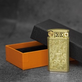 Бензиновая винтажная ретро зажигалка с орнаментом (золото)