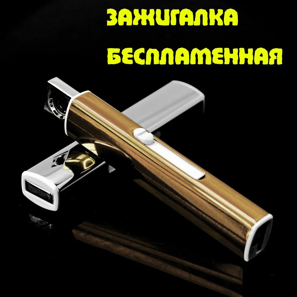 Беспламенная зажигалка ветрозащитная с портом USB металлическая (желтый)