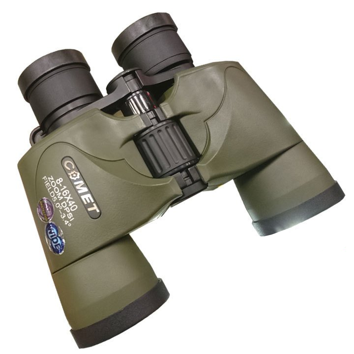 Бинокль Comet 8-16x40 ZOOM с центральной фокусировкой – оптимальный выбор за довольно небольшие деньги. Производится фонарь в прочном и удобном корпусе из качественных материалов с высокой стойкостью к износу, сколам и несильным механическим ударам. Удобные формы бинокля позволяют ему идеально лежать в руках без выскальзывания при интенсивной эксплуатации. Благодаря особенностям покрытия бинокль не будет выскальзывать из рук даже во время дождя.