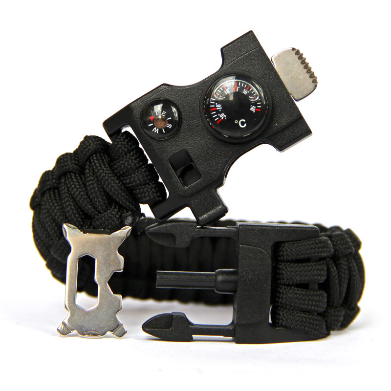 Браслет выживания: М-тул огниво свисток термометр компас, черный