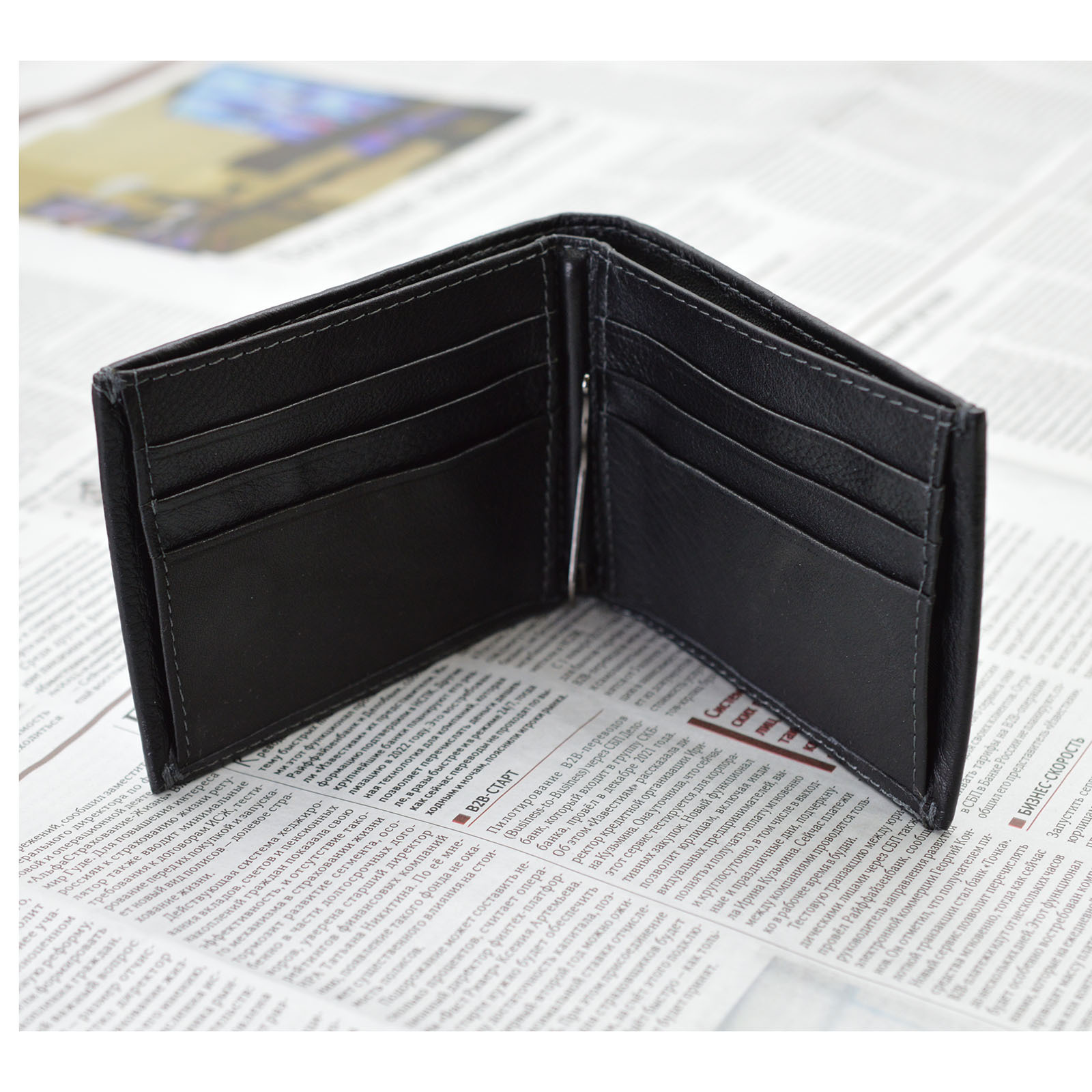Множество отделений для банковских, скидочных и визитных карт.