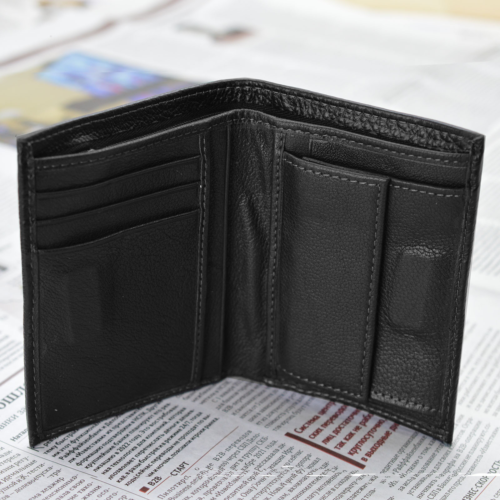 • Множество отделений для банковских, скидочных и визитных карт.