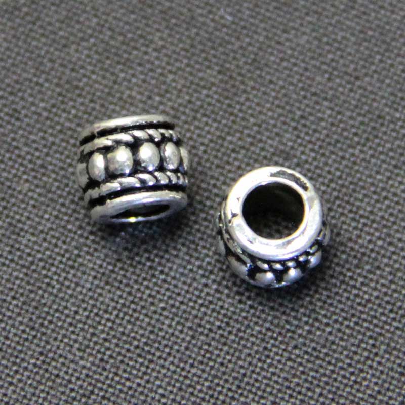 Универсальная (темляк, браслет) Бусина на паракорд. Металлический бочонок с цветочным узором. Диаметр отверстия 4мм. Габариты 8*10мм.