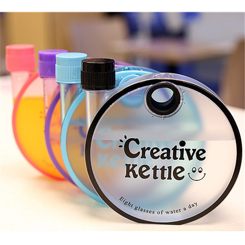 Оригинальная бутылка-фляжка обязательно привлечет внимание окружающих! Не бойтесь быть яркими! Новинка, которая поражает своим дизайном и необычными формами. Фляга имеет форму плоского круга, с боковой узкой горловиной. Горлышко бутылка закручивается пластмассовой крышкой, с резьбовым креплением. Креативная форма исполнения делает ее довольно удобной и компактной Удобная и практичная бутылка Creative Kettle, подойдет студентам и школьникам, так как занимает мало место в вашей сумке/рюкзаке.