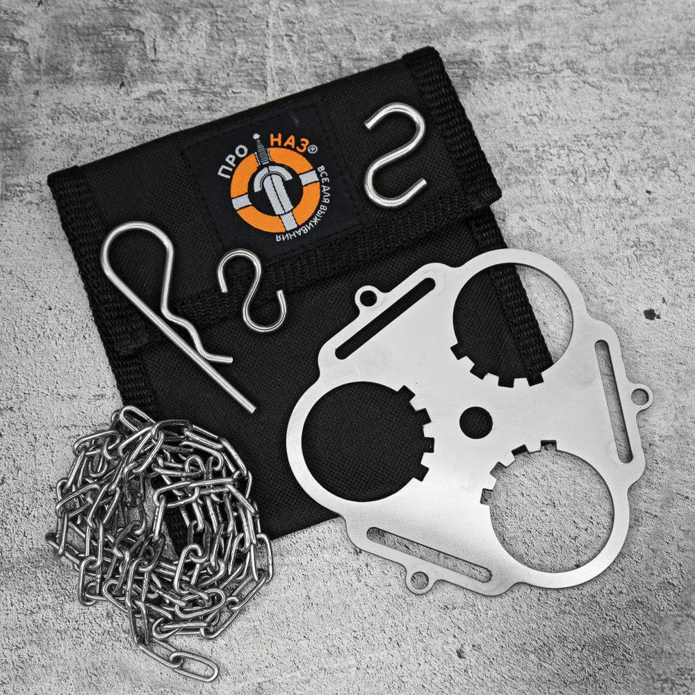 Все содержимое удобно вмешается в прочный чехол из кордуры, на котором также есть удобная петля для карабина;