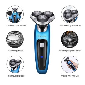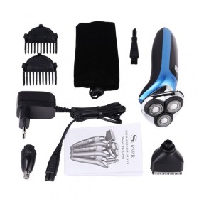 Surker 9598-RSCX представляет собой 3в1 для влажной и сухого бритья. Она имеет бритву, триммер для носа, и бритву для бакенбардов. Всю бритву можно мыть, что делает ее идеальной для использования в душе.