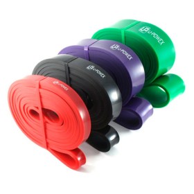 Универсальный тренажер с которым можно как разогреться, так и выполнить основную тренировку на все группы мышц. Петли изготовлены из 100% многослойного латекса, они растягиваются в три раза от своей первоначальной длины. При растяжении нагрузка плавно увеличивается: чем сильнее растягивается петля, тем выше нагрузка. На каждой петле указан диапазон нагрузки. Первое значение - нагрузка при начальном растяжении, второе - нагрузка при максимальном растяжении петли. Толщина всех лент одинаковая, отличие только в ширине, за счет которой и достигается различие в нагрузках. Упражнения на петлях развивают все пять физических качеств: выносливость, гибкость, ловкость, силу и быстроту. Резинки выполнены в четырех цветовых решениях, каждый из которых обозначает свой уровень растяжения: красный, черный, фиолетовый, зеленый.