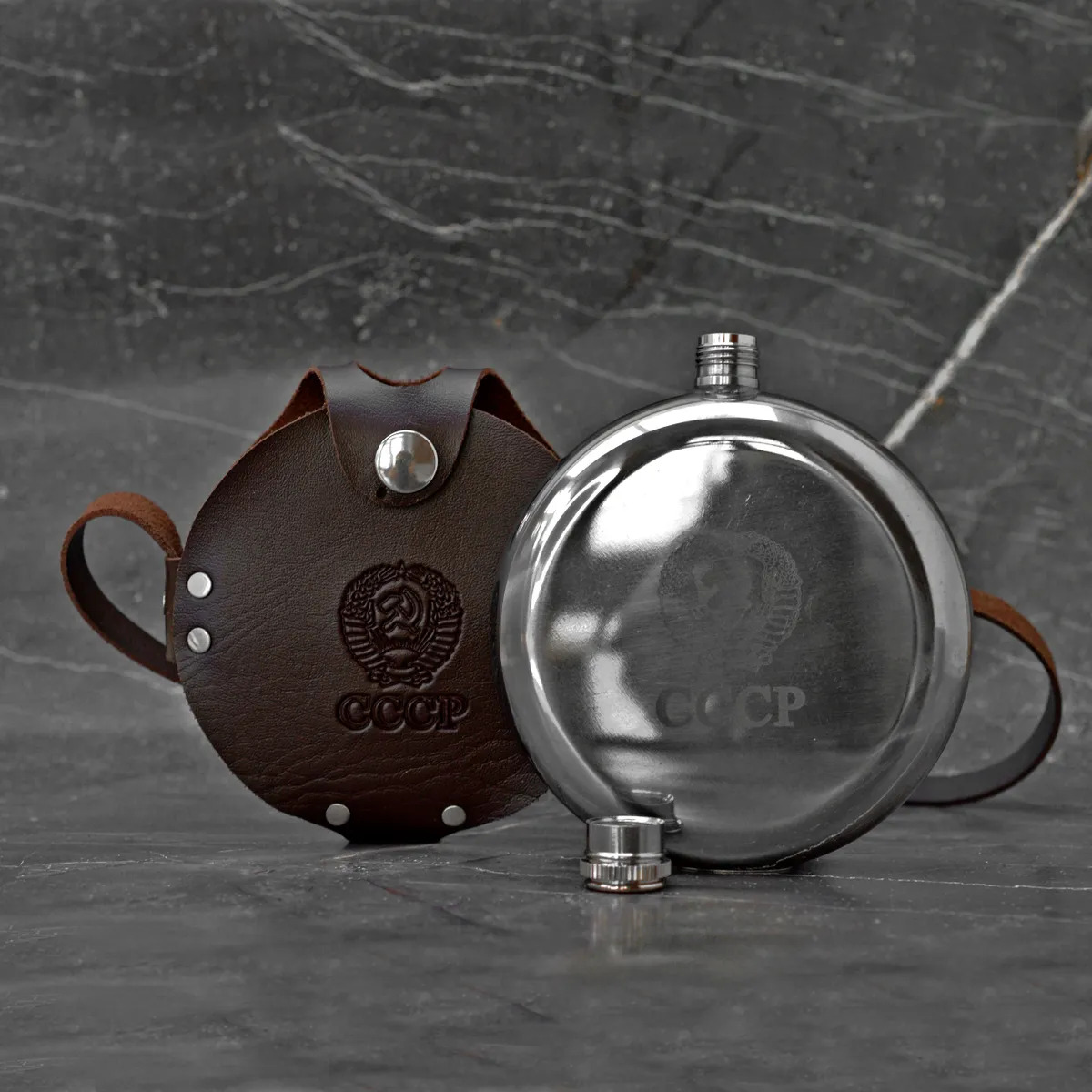 Фляга круглая в кобуре, 8 oz (240 мл) Материал изготовления фляжки – качественная нержавеющая сталь. Она обеспечивает высокую прочность и долговечность изделия, привлекательный внешний вид. Металл никак не взаимодействует с жидкостью, а значит не изменяет вкуса напитка.