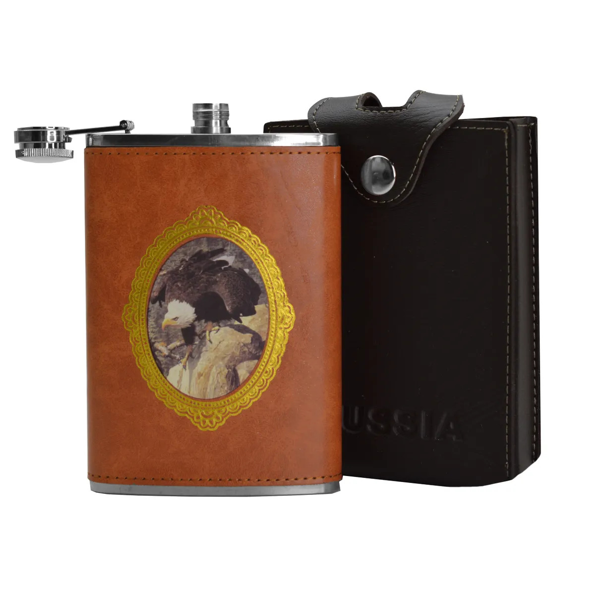 Фляга стальная в кобуре "Россия" 9 oz (270мл)