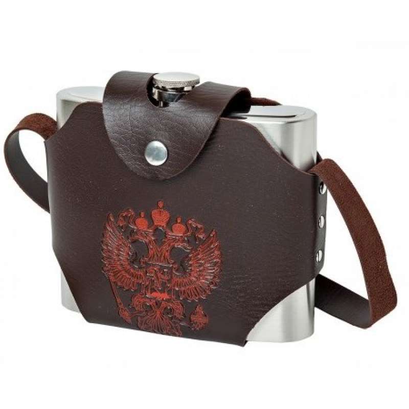 Большая фляга для настоящего патриота. Фляжка цельнометаллическая из нержавеющей стали в кобуре.