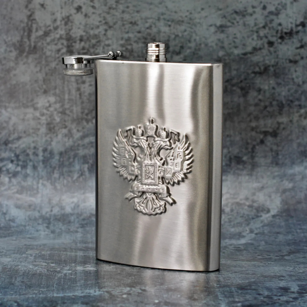 Фляжка стальная матовая "герб" 10 oz (300 мл)