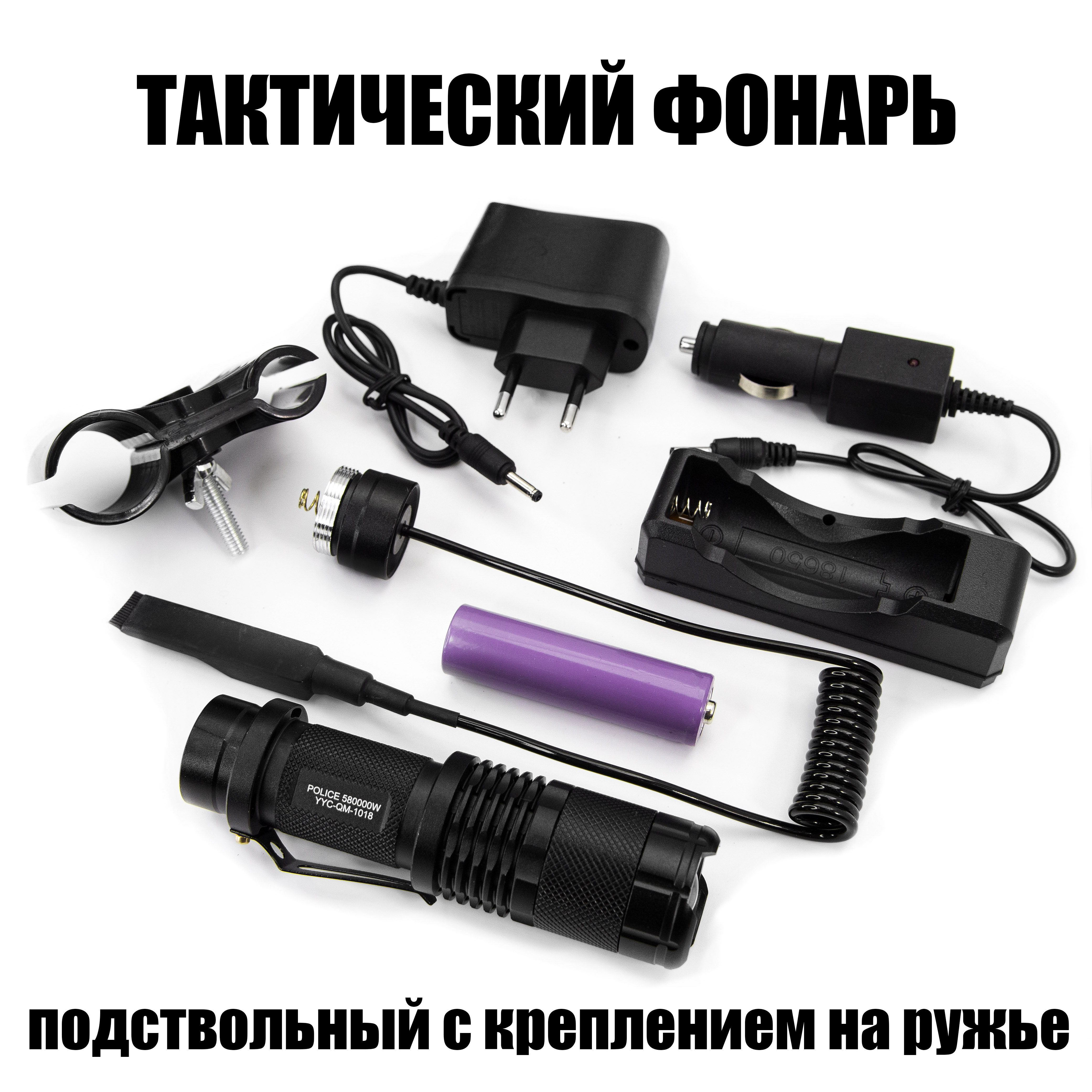 Тактический мощный подствольный ZOOM фонарь "YYC-QM-1018" скреплением на ружье и выводной кнопкой.