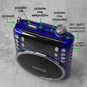 Разъём 3.5мм позволяет использовать рупор как MP3 плеер;