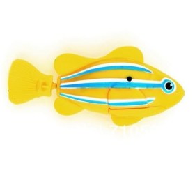 Прекрасный электронный питомец для ребенка в виде рыбки яркой раскраски. При погружении воду, роборыбка начинает плавать, как настоящая, она виляет хвостом, огибает препятствия, умеет плавать одна, а может присоединиться к другой рыбке и плавать вдвоем. Cпособна плавать в 5-ти разных направлениях: вверх/вниз, вперед, вправо/влево, изменяя при этом скорость передвижения. На воздухе роборыбка перестает работать, экономя заряд батареек, поэтому ее надо опускать в воду, когда захочется полюбоваться движениями.