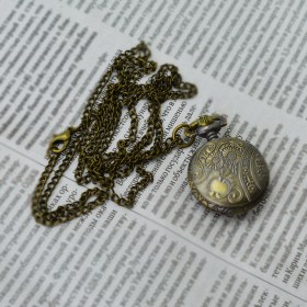 Оригинальные карманные часы на цепочке в металлическом корпусе .Задняя крышка богато украшена гравированным растительным орнаментом.Стильный акцент винтажного образа и оригинальная идея для подарка!