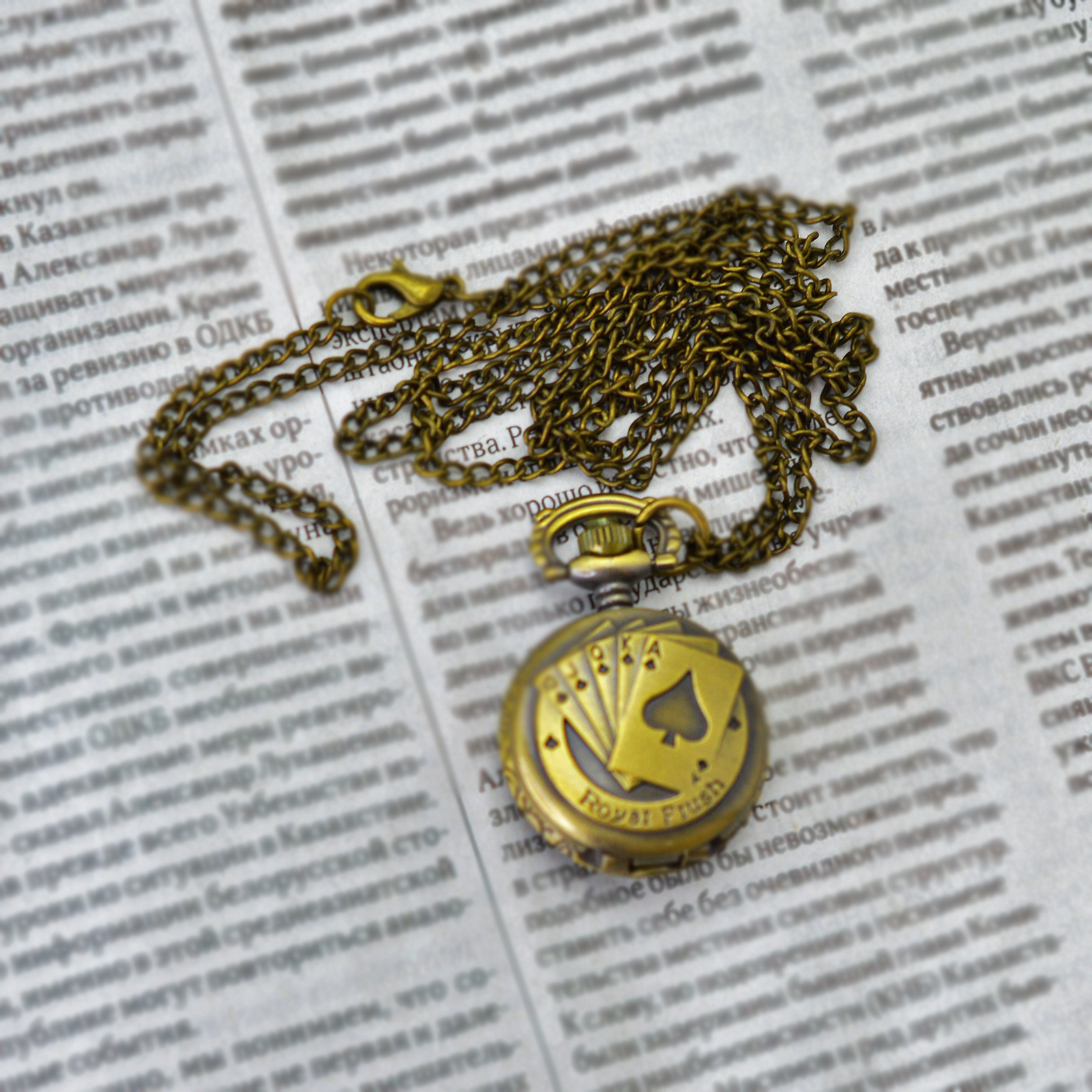 Карманные винтажные часы на цепочке "Джокер". Металл, стекло, кварцевый часовой механизм. Конец XX века