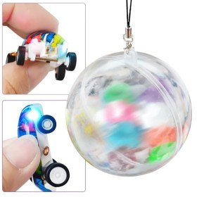 - Положите машинку в прозрачный шар, включите кнопку и закройте шар. Машина начинает набирать скорость катаясь вокруг мяча и заполняя весь шар различными яркими цветами.