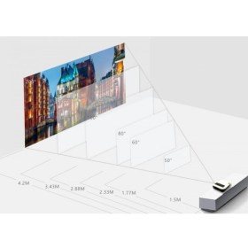 Проектор имеет встроенную систему Андройд, может использоваться без компьютера. Есть возможность организовать беспроводное соединение. Можно вывести на экран изображение с мобильного телефона и многое другое!