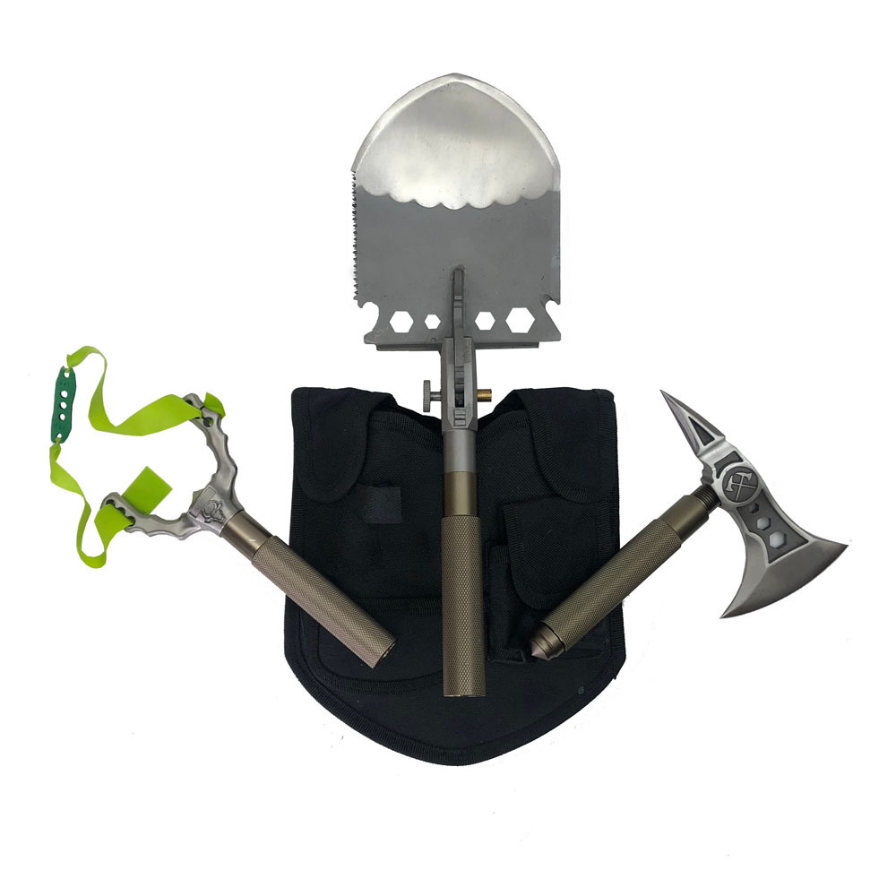 Лопата, секира, рогатка -настоящий набор для выживания, который также подойдет и для автомобилиста. Высокое качество, долговечность и удобство набора не оставит вас равнодушными.