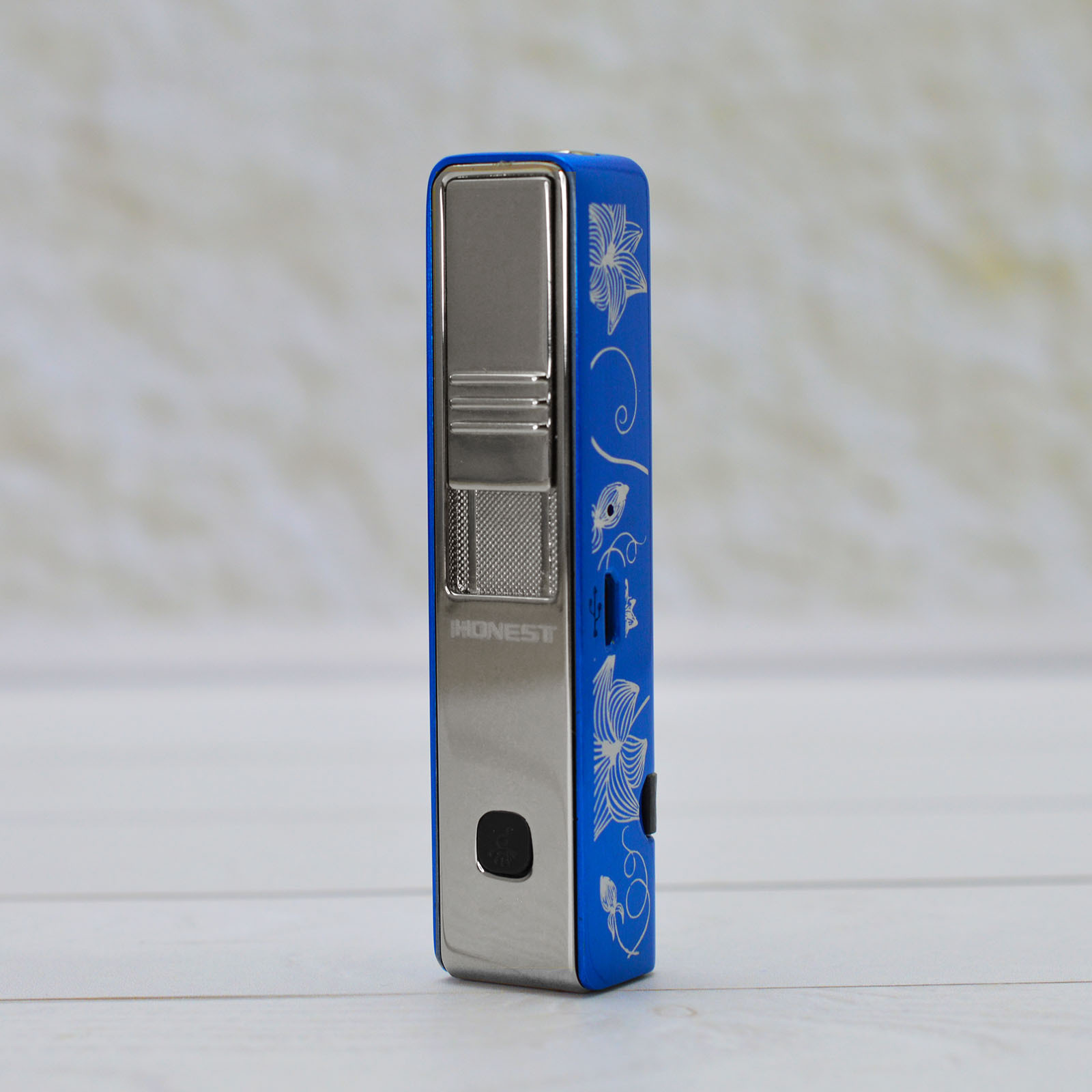 Металлическая USB зажигалка спиральная HONEST с фонариком, синяя