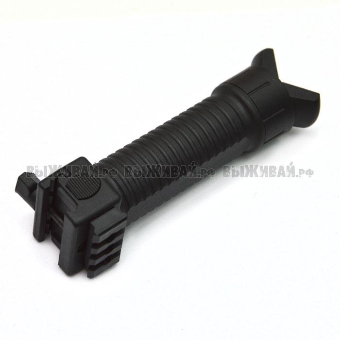 Универсальная рукоять на охотничьи арбалеты и страйкбольное оружие со встроенными автоматическими сошками. Имеет 2 типа крепления (снизу и сбоку цевья), изготовлена из особо прочного углепластика, от чего ее вес незначителен.