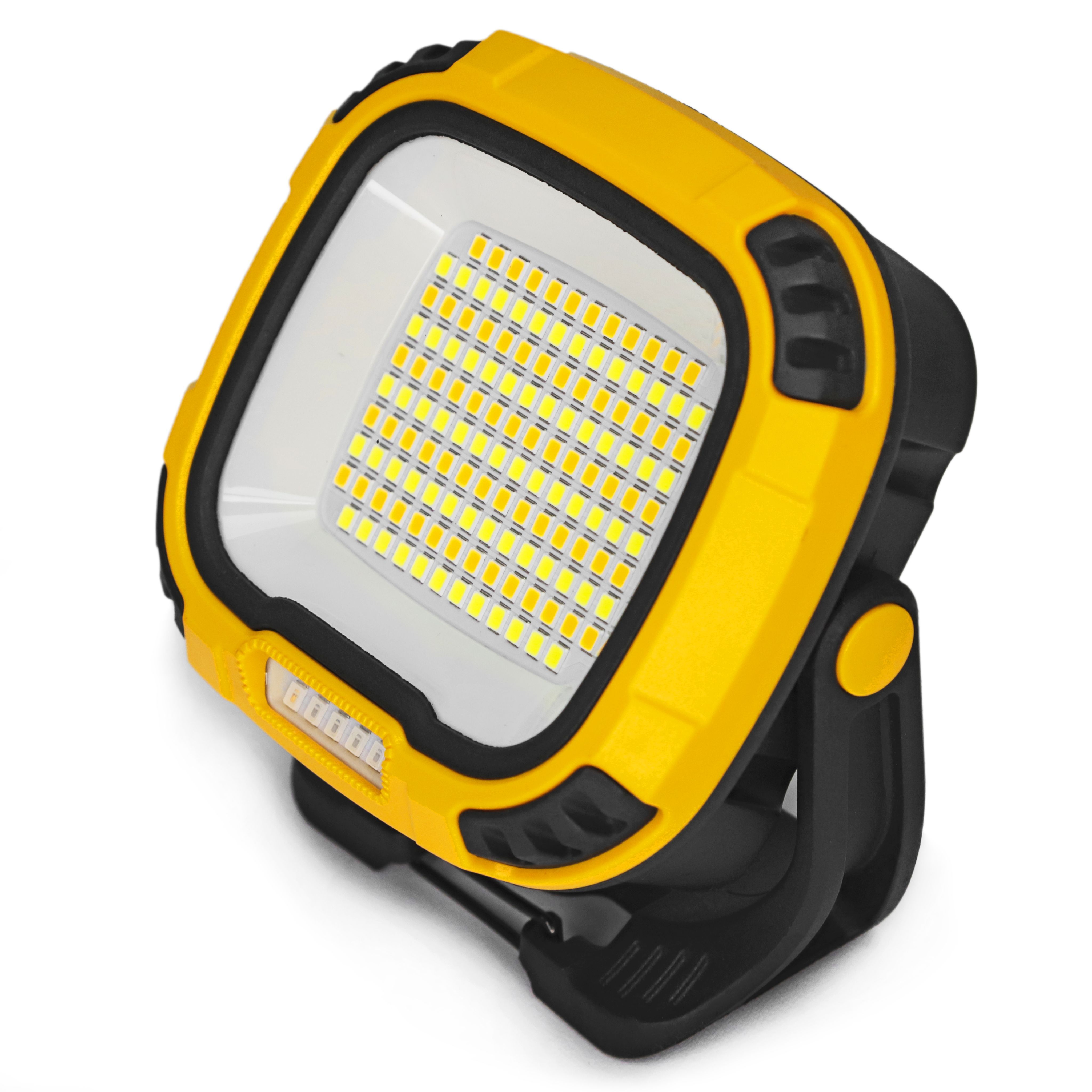 Наличие удобной поворотной ручки- подставки, которая позволяет фиксировать прожектор в различных положениях и регулировать направление света;