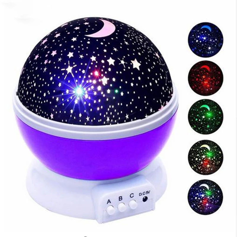 Круглый вращающийся ночник — проектор «Звездное небо» осветит комнату малыша прекрасными звездами и луной, сделает ее волшебной, доброй и уютной. Питание светильника возможно от usb провода или от четырёх батареек типа ААА. Ночник комплектуется полупрозрачным матовым колпаком, который позволяет создать более приглушённое комфортное свечение.