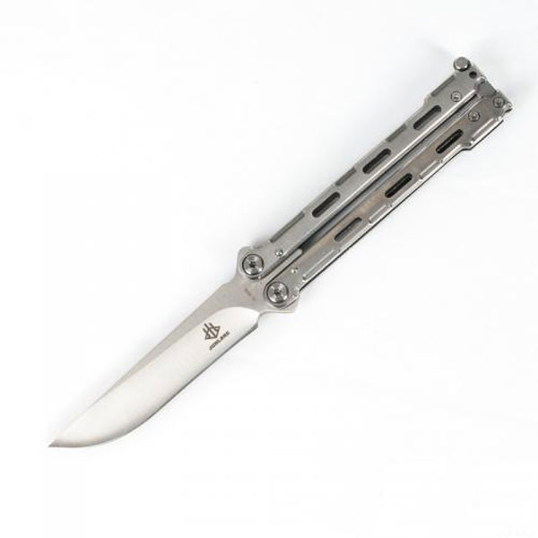 Выполнен в серебристой расцветке. Произведен фабричным способом из стали марки 440С. В рукоятке есть выемки для облегчения веса. В сложенном виде тыльная сторона рукоятки выполняет функцию стеклобоя.Есть клипса для фиксации на кармане. При желании клипсу можно снять. Механизмы можно регулировать и настраивать. Нижняя часть клинка имеет выступы, которые служат упорами под пальцы.