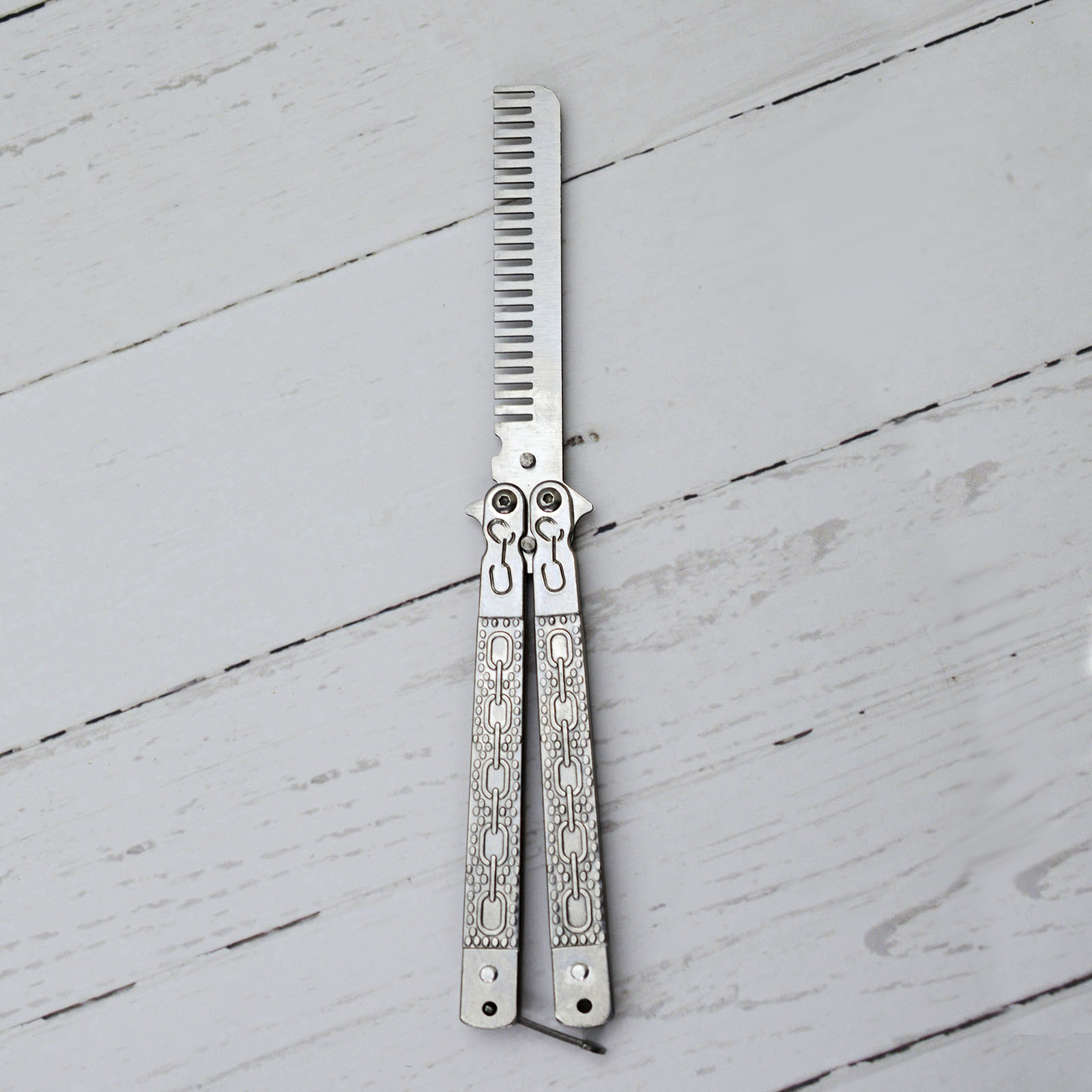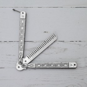 Нож-бабочка складная тренировочная расческа (Балисонг) серебристый