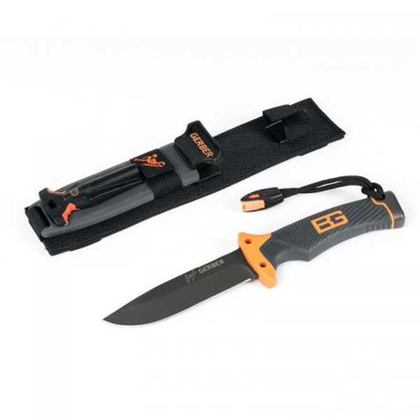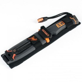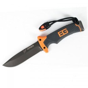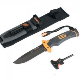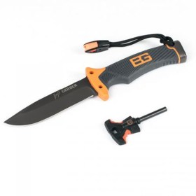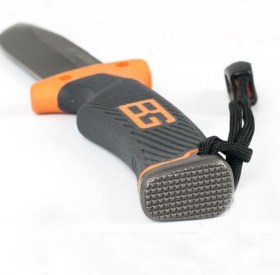 Также на тыльной части интегрирован молоток, который поможет что-то подстучать, прибить и т.п. На темляке расположен свисток, с помощью которого можно подать сигнал о помощи. На обухе есть специальная насечка для огнива, при помощи которой можно разжечь огонь, ударив по насечке огнивом, тем самым выбив искры.В комплекте идет инструкция по выживанию от известного телеведущего Беара Гриллса. Благодаря своим особенностям и надежности, данный нож отлично поможет вам в быту, на даче, походах на природу, охоте, рыбалке, гараже, машине и т.п.