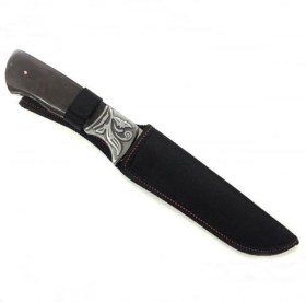 Материал рукоятки сделан из дерева, а узоры создают рифленую поверхность, которая при контакте с ладонью уменьшает ее скольжение, позволяя надежно фиксировать нож в руке.