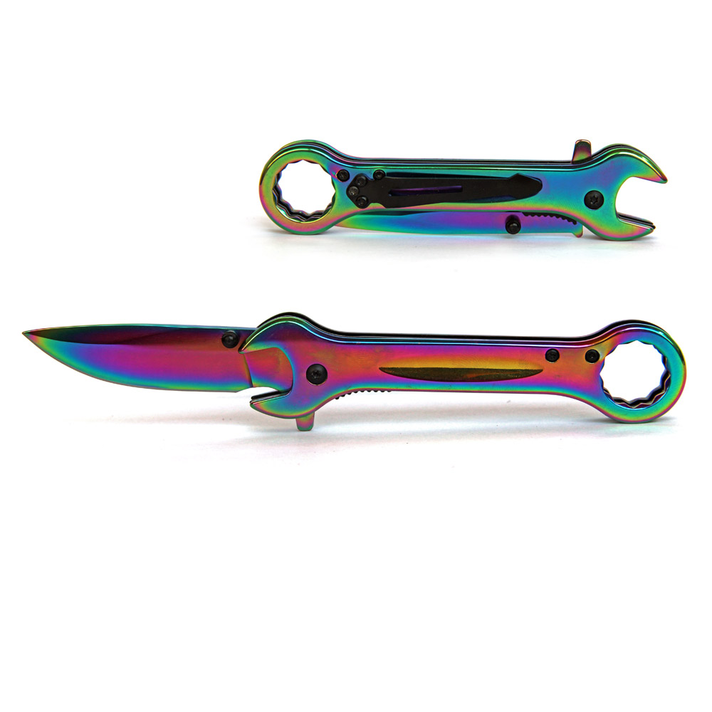 Нож-гаечный ключ. Прямой складной нож для выживания и повседневного ношения из стали. Имеет клипсу и отверстие для темляка.