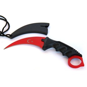 Клинок из стали 440 имеет достаточно высокую твердость. В комплекте идут ножны из пластика со шнурком, позволяющим носить нож на шее. Длина клинка 8,9 см, общая длина изделия – 19 см. Весит нож керамбит 140 г, упакован в картонную коробку. Подойдет для коллекции, порадует любителей фэнтези и оригинальных вещей.