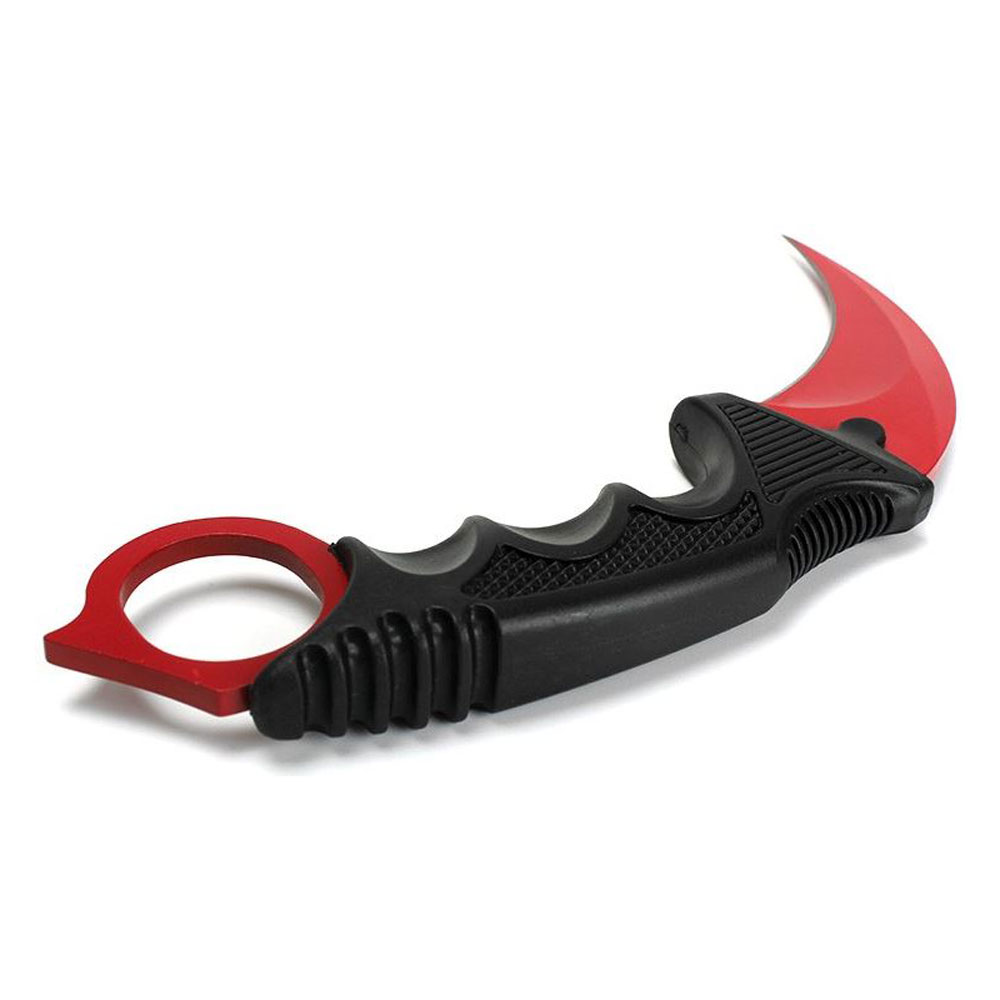 Яркий и оригинальный нож-керамбит H-230 говорит сам за себя: запоминающаяся модель, клинок из стали-нержавейки 440, кольцо для продевания пальцев и темный шнурок для удобного ношения на шее.
