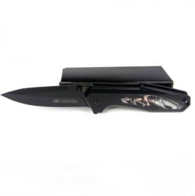 Очень надежная модель складного ножа с красивым принтом на рукоятке. Станет хорошим подарком для мужчины!Открывается указательным пальцем одной руки, имеет систему доводки клинка до раскрытого положения.Присутствует клипса для ношения ножа на кармане или ремне.Фиксатор положения клинка в раскрытом виде - лайнер-лок.Материал лезвия - сталь 440с. На рукояти пластиковые накладки.