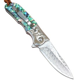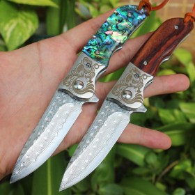 Стальной складной нож Нож складной A054. Дизайн рукояти выполнен в узорчатом стиле,дополняет рисунок на лезвии.Стильный внешний вид не оставит равнодушным истинных ценителей.Компактный размер. Удобная рукоять для кисти среднего размера. Ограничитель хвата - чуть больше половины указательного пальца. Идеальный подарок охотникам.