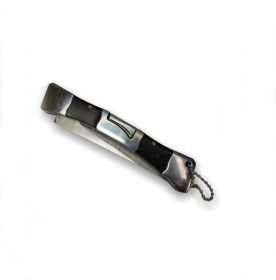 Нож автоматический складной B3989. Прочное лезвие из нержавеющей стали.Имеет отверстие для темляка.Складная модель ножа компактна, удобна в транспортировке и функциональна в применении. Такой нож ― непременный и надежный спутник охотника, рыбака или туриста. Качественный нож в походе и на охоте выполняет множество задач.