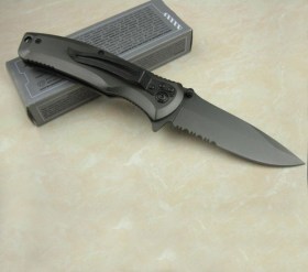 Новинка,складной, с фиксатором клинка, сталь 440 с титановым покрытием, часть лезвия имеет серрейторную заточку, рукоять металлическая, имеется клипса для ношения на поясе.Нож является туристическим, не относится к холодному оружию, не имеет ограничений по обороту и ношению.