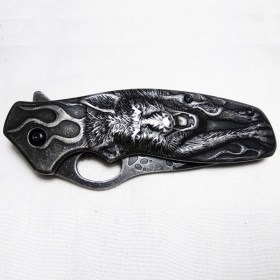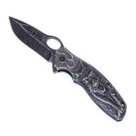Стальной складной нож WEREWOLF. Дизайн выполнен в стиле кованной стали. Матовый цвет лезвия, удобная рукоять для кисти среднего размера. Ограничитель хвата - чуть больше половины указательного пальца. Заточка изначально отличная - режет лист формата А4 на весу. Идеальный подарок охотникам.