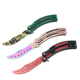 Это идеальный продукт, если вы любитель тренировочных ножей.Изготовлен из нержавеющей стали 440C.Складной нож-бабочка тренировочный не имеет острых лезвий, вы можете практиковаться без опасений. Помощник в туризме и отдыхе.