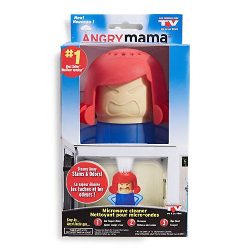 Использовать очиститель очень просто. Снимите крышку (голову) и заполните емкость уксусом (приблизительно 2-3 столовых ложки). Верните голову на место. Отправляйте Злую Маму в микроволновку и включите ее на полную мощность на 5-7 минут. Пар, выходящий из головы разъяренной домохозяйки будет смягчать грязь внутри микроволновки. После этого вы сможете легко удалить остатки еды, жир и прочую грязь на дверце и стенках обычной губкой или салфеткой. Маленькую статуэтку после использования вы можете вымыть руками или отправить в посудомоечную машину.