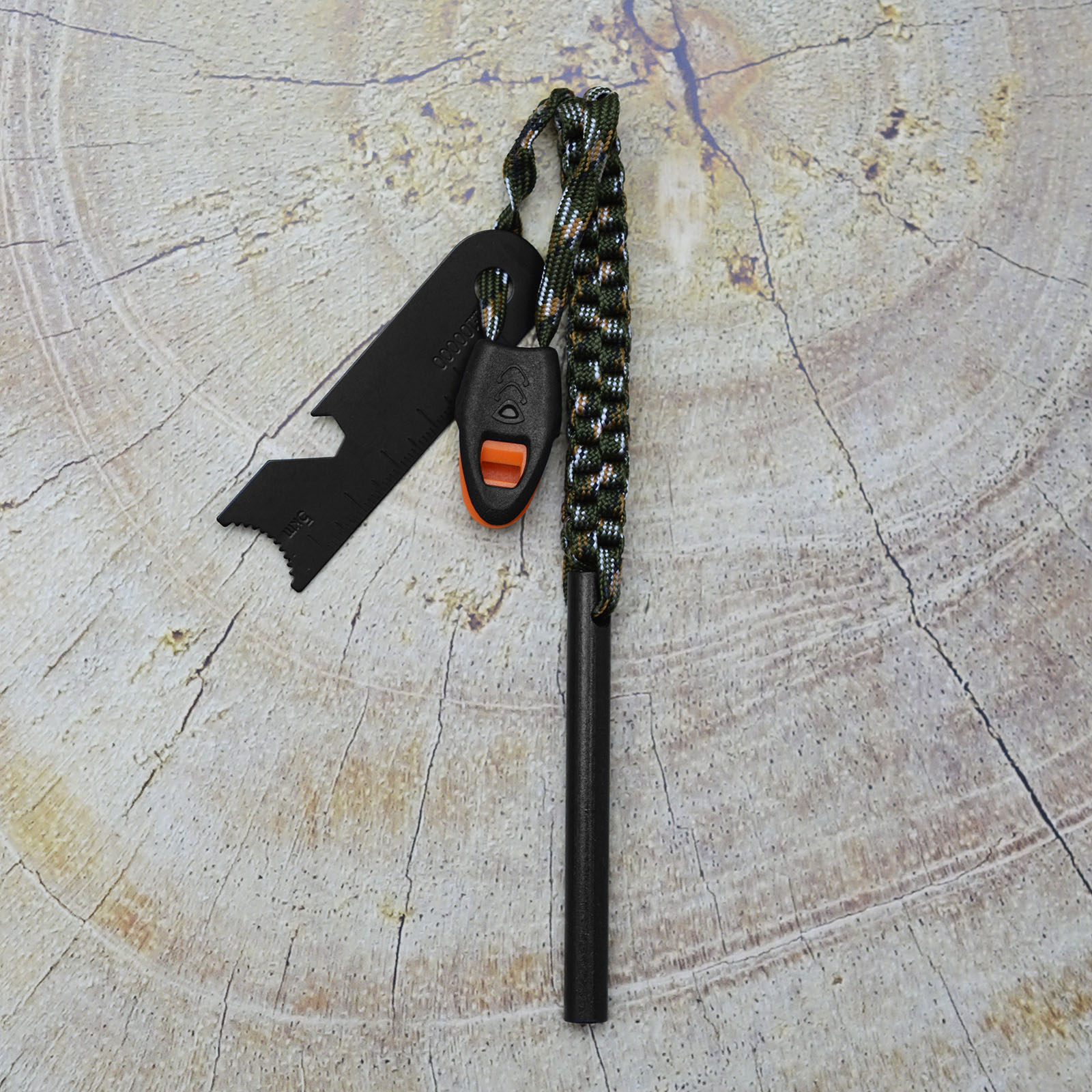 Огниво с паракордом, кресалом и аварийным спасательным свистком (камуфляж)
