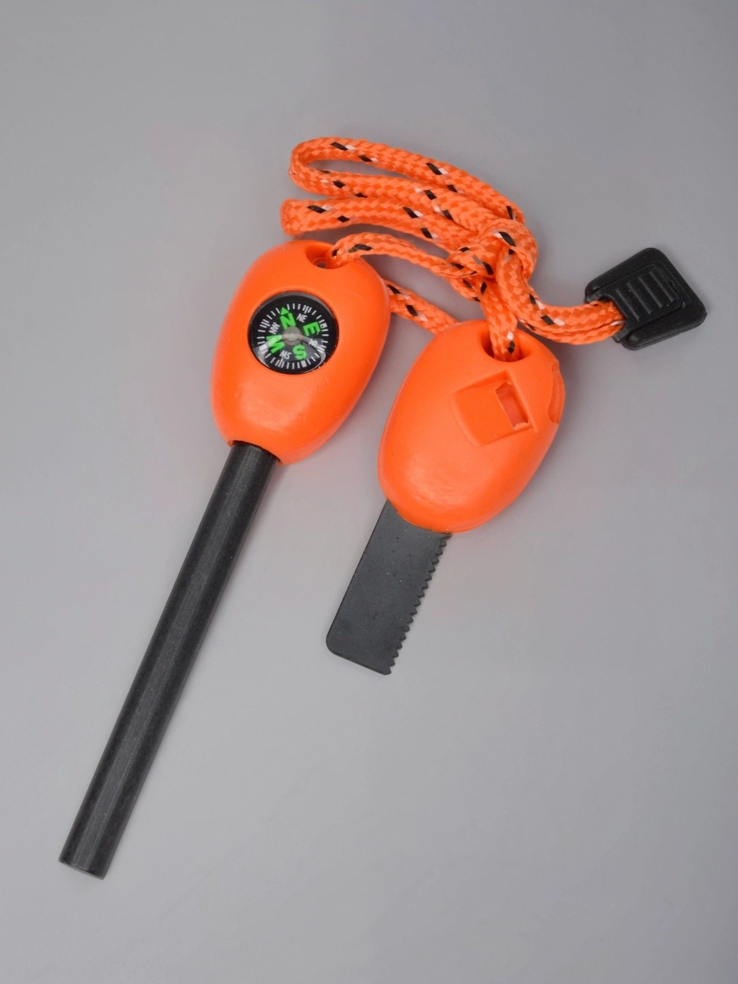 Большое огниво с компасом пригодится в туристическом походе. Позволяет развести огонь в любых погодных условиях. С его помощью можно легко поджечь бумагу, сухую траву и кору.
